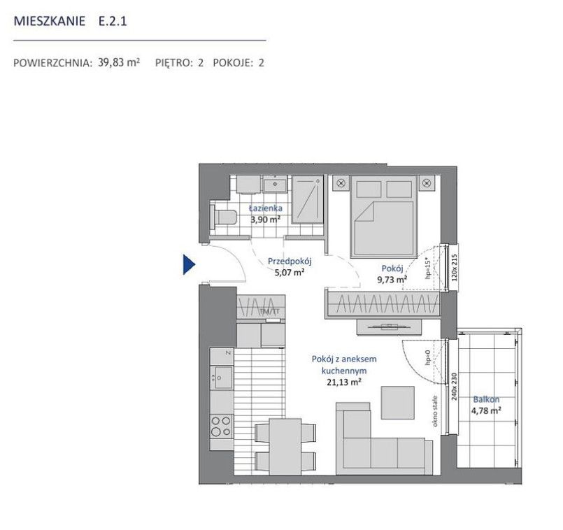 MIESZKANIE o pow. 39,83 m2 składa się: