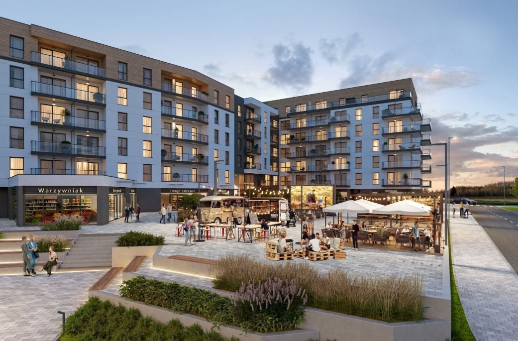 Na terenie osiedla mieszkańcy znajdą wspólną strefę rekreacyjną oraz część handlowo-usługową.