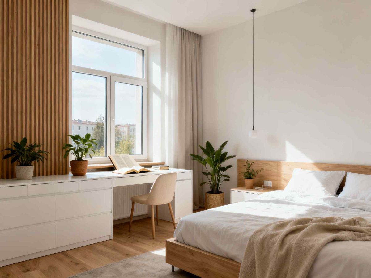 39,83 mkw. Funkcjonalny rozkład zapewnia przestrzeń z podziałem na strefę dzienną, sypialnię oraz przechowywanie.