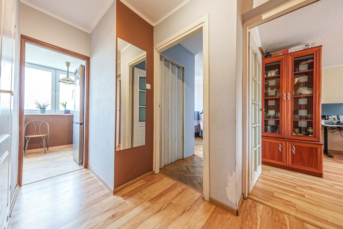 MIESZKANIEMieszkanie o powierzchni 53 m² znajduje się na 5. piętrze w 5-piętrowym budynku z lat 60. i składa się z: