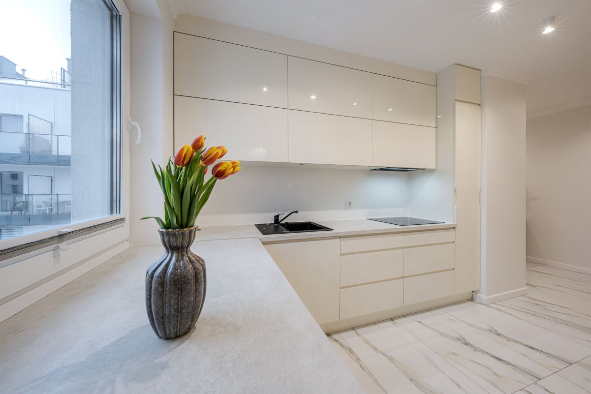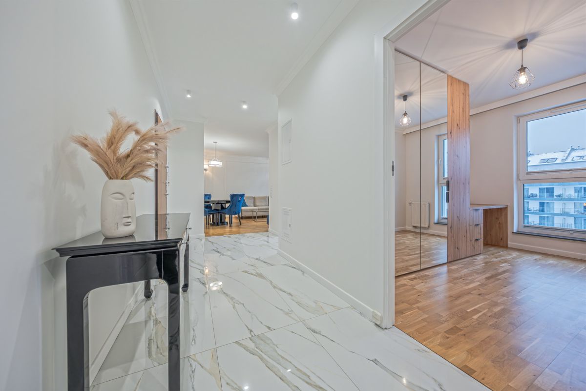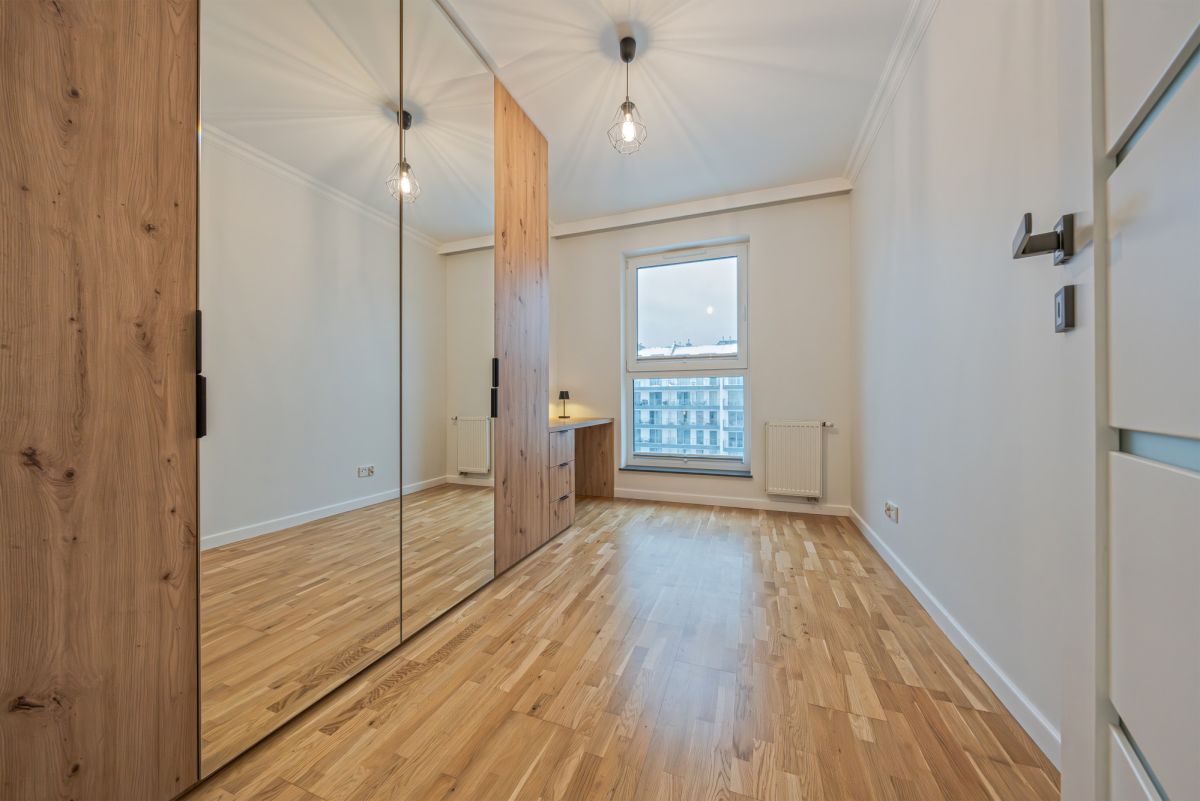 Mieszkanie zostało wykończone w wysokim standardzie i jest w pełni wyposażone w sprzęt AGD wysokiej jakości. Lokal nie był wcześniej wynajmowany i znajduje się w