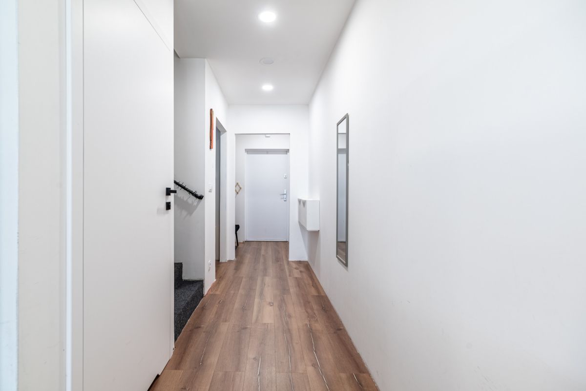 - Parter to słoneczny salon z aneksem kuchennym i wyjściem na taras oraz ogródek, toaleta, wiatrołap i praktyczne pomieszczenie gospodarcze - idealne na biuro, pralnię lub dodatkowe schowki.