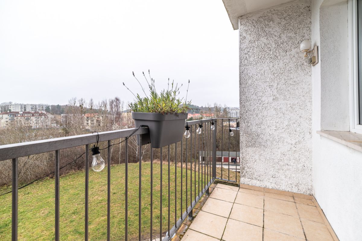 duży balkon tworzy wygodną strefę dzienną i daje poczucie dodatkowej przestrzeni.