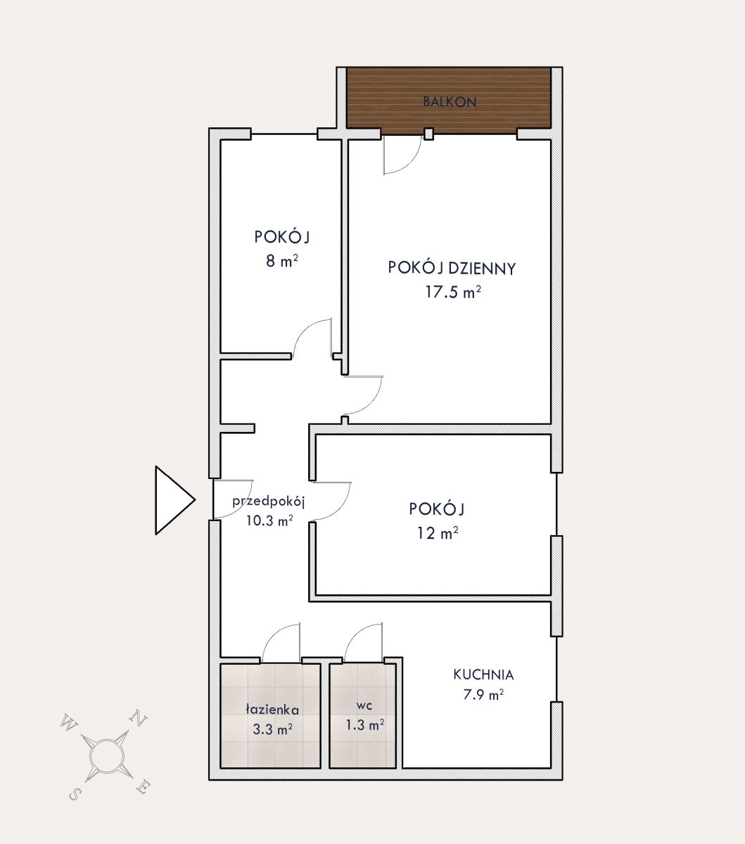 funkcjonalny układ trzech niezależnych pokoi, co zapewnia komfort zarówno rodzinie, jak i osobom poszukującym nieruchomości pod wynajem. Przestronny salon z wyjściem na