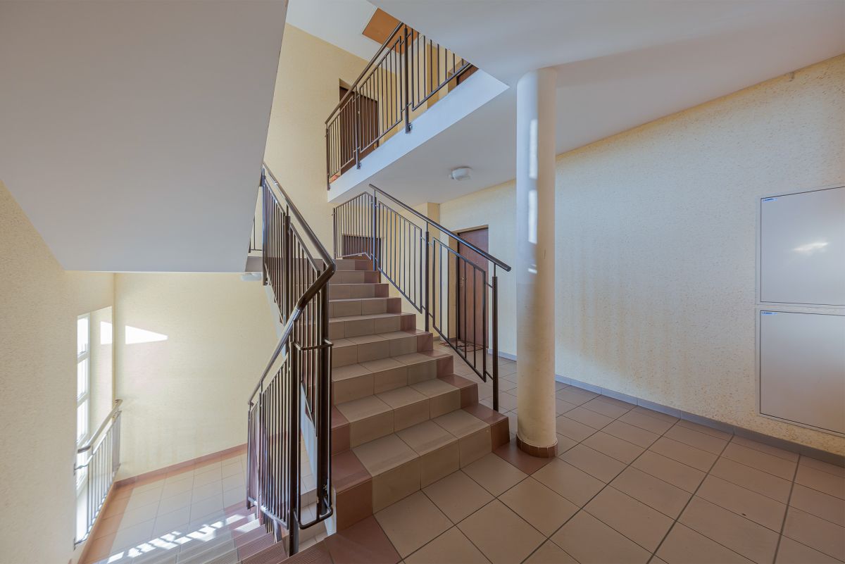 Budynek zadbany, w dobrym stanie technicznym, zarządzany przez prężnie działającą wspólnotę mieszkaniową. Teren ogrodzony, z wewnętrznym dużym parkingiem zabezpieczonym szlabanem - przeznaczonym do wyłącznego użytku mieszkańców.