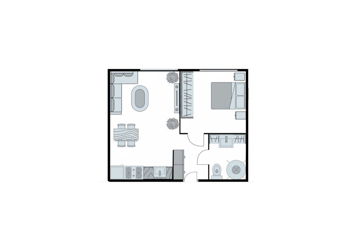 - Przestronnego salonu połączonego z funkcjonalnym aneksem kuchennym