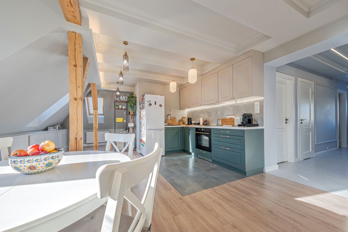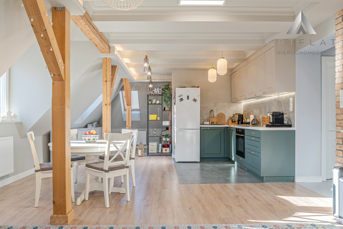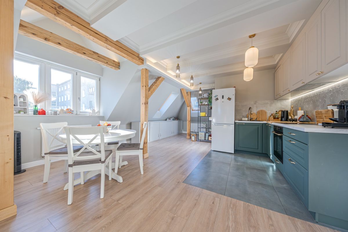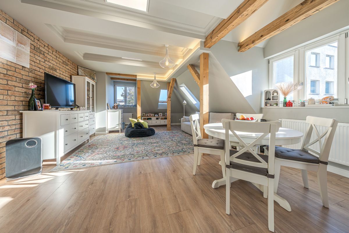 po kapitalnym remoncie, zlokalizowaną w kompletnie odrestaurowanym budynku, który został wyremontowany zgodnie ze wskazaniami konserwatora zabytków. To propozycja dla osób ceniących połączenie nowoczesnego komfortu z duszą historycznej architektury. W mieszkaniu zachowano oryginalne drewniane belki konstrukcyjne, które nadają wnętrzu niepowtarzalny charakter i podkreślają jego historyczny klimat.