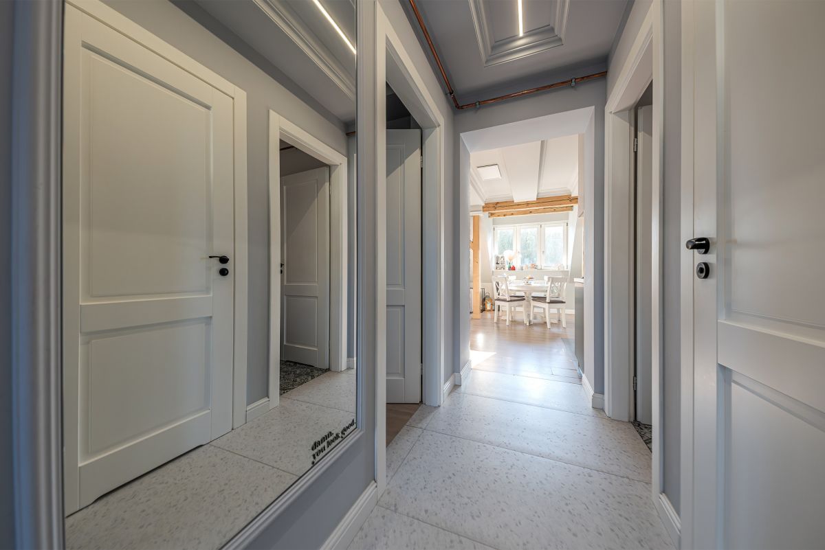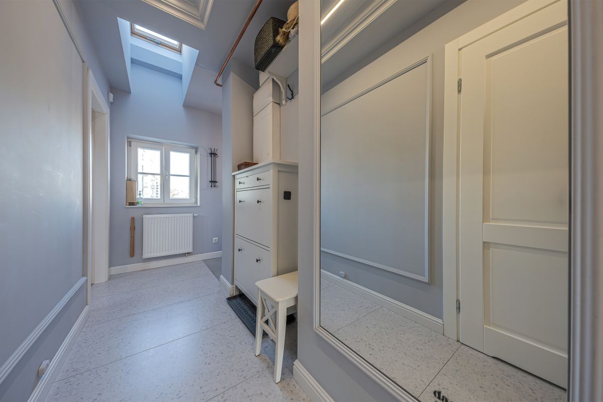 - Powierzchnia użytkowa po remoncie: 72 m² (3 pokoje + antresola) + pokój dziecięcy jest dwupoziomowy z antresolą