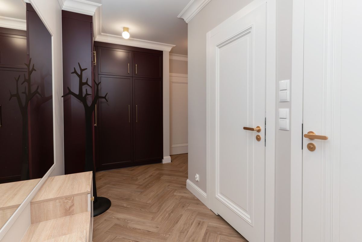 - Przedpokój z pojemnymi szafami w zabudowie.