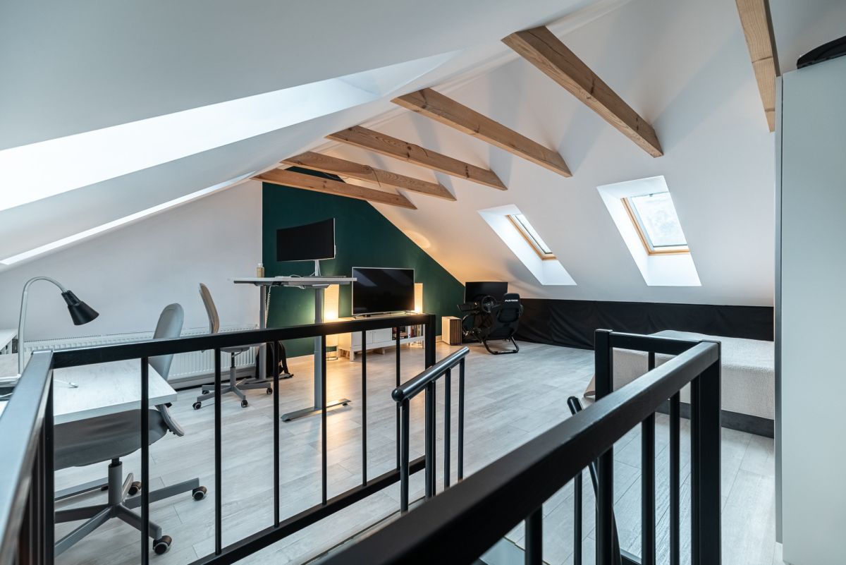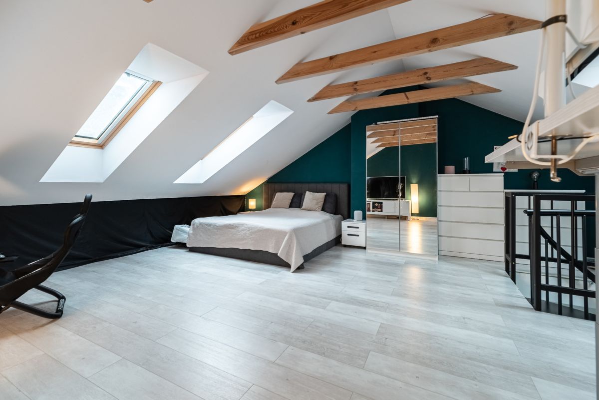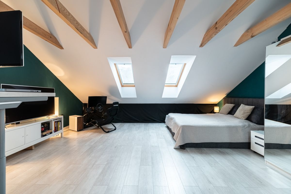 • Poddasze zostało zaadaptowane na cele użytkowe i obecnie stanowi komfortową przestrzeń mieszkalną o powierzchni ok. 38 m² - sypialnia