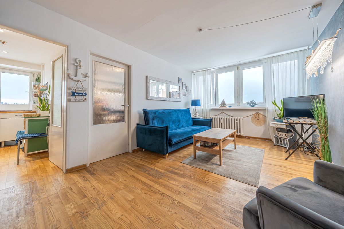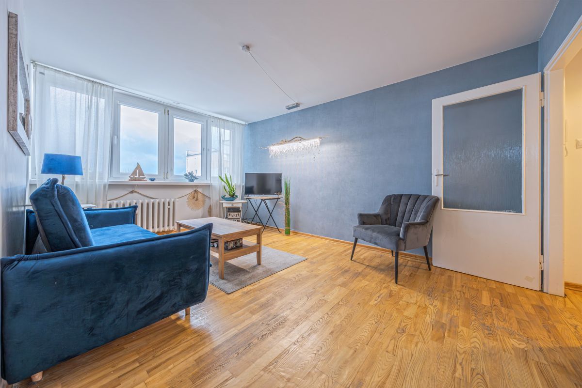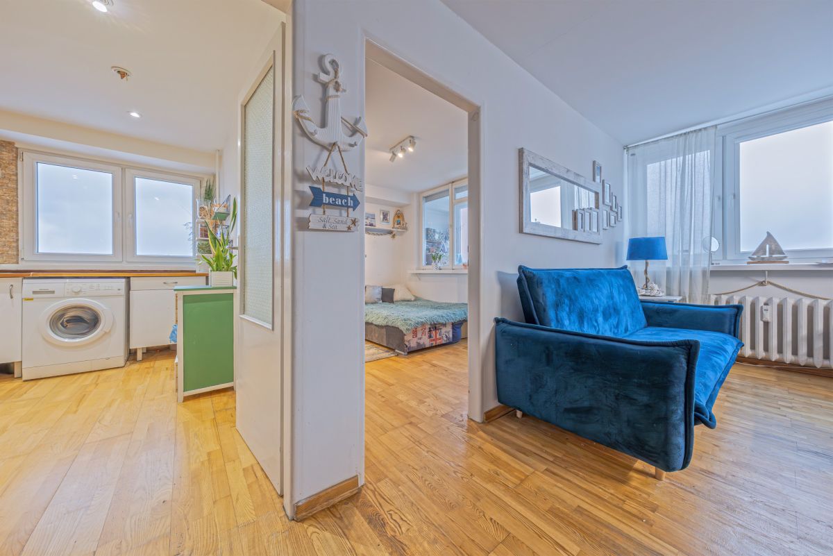 powierzchni 38,2 m² położone jest na 8. piętrze w 10-piętrowym budynku, w jednej z najbardziej cenionych lokalizacji w centrum Gdyni. Z okien rozciąga się