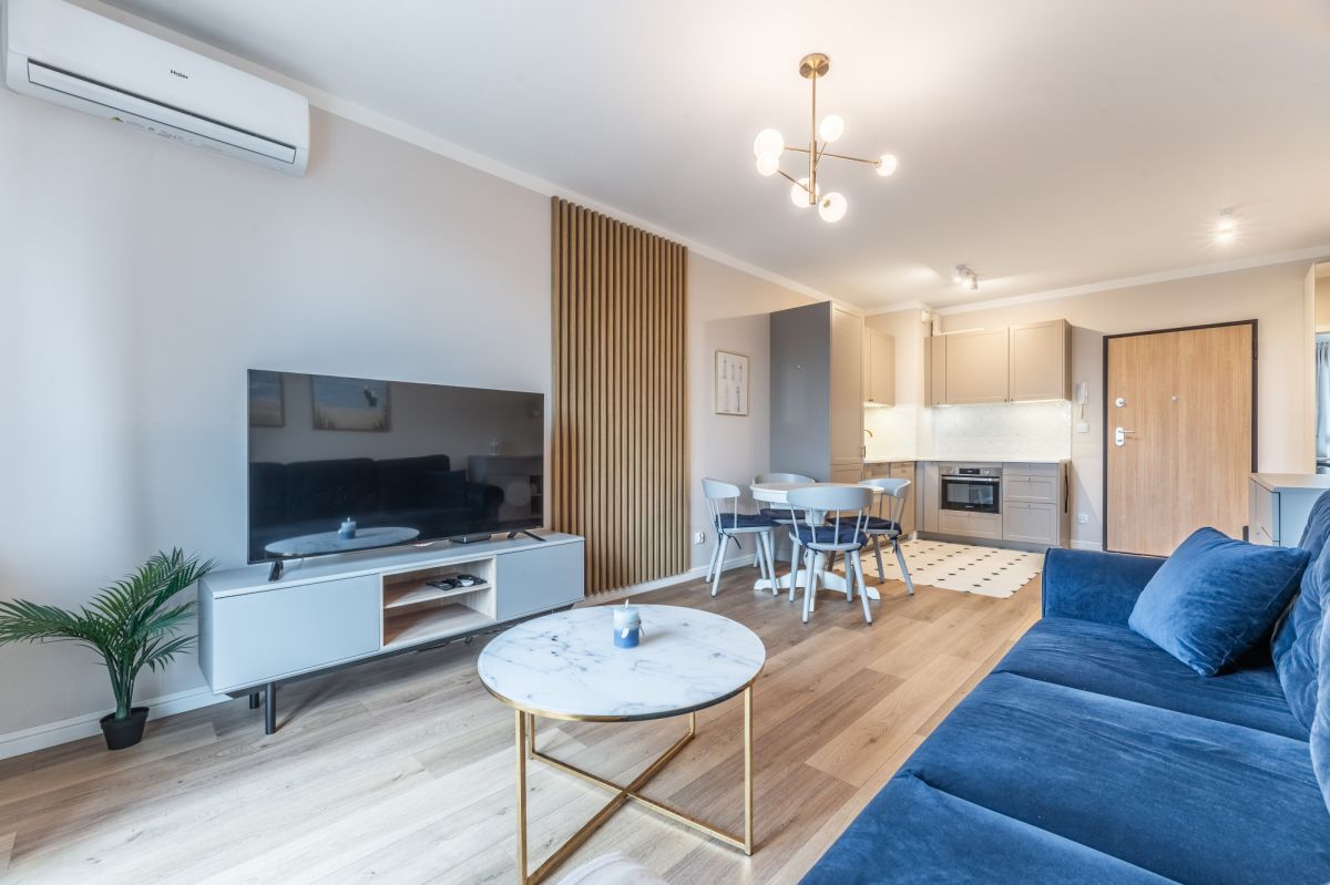 Mieszkanie jest w pełni umeblowane i gotowe do zamieszkania (dokładnie tak jak prezentuje się na zdjęciach). W kuchni sprzęt AGD (lodówka z zamrażarką, zmywarka, piekarnik, płyta indukcyjna, czajnik elektryczny). Kuchnia wyposażona w podstawowe sztućce i naczynia. Łazienka wyposażona w wannę oraz pralkę.