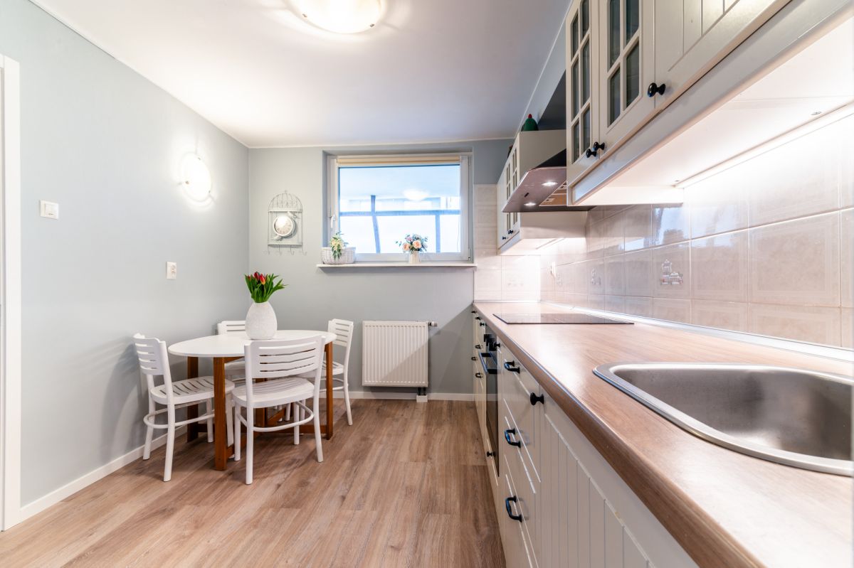 - wygodnej, oddzielnej kuchni z oknem (9,55 m2) z praktycznym pomieszczeniem gospodarczym (1,58 m2) pełniącym funkcję spiżarni;
