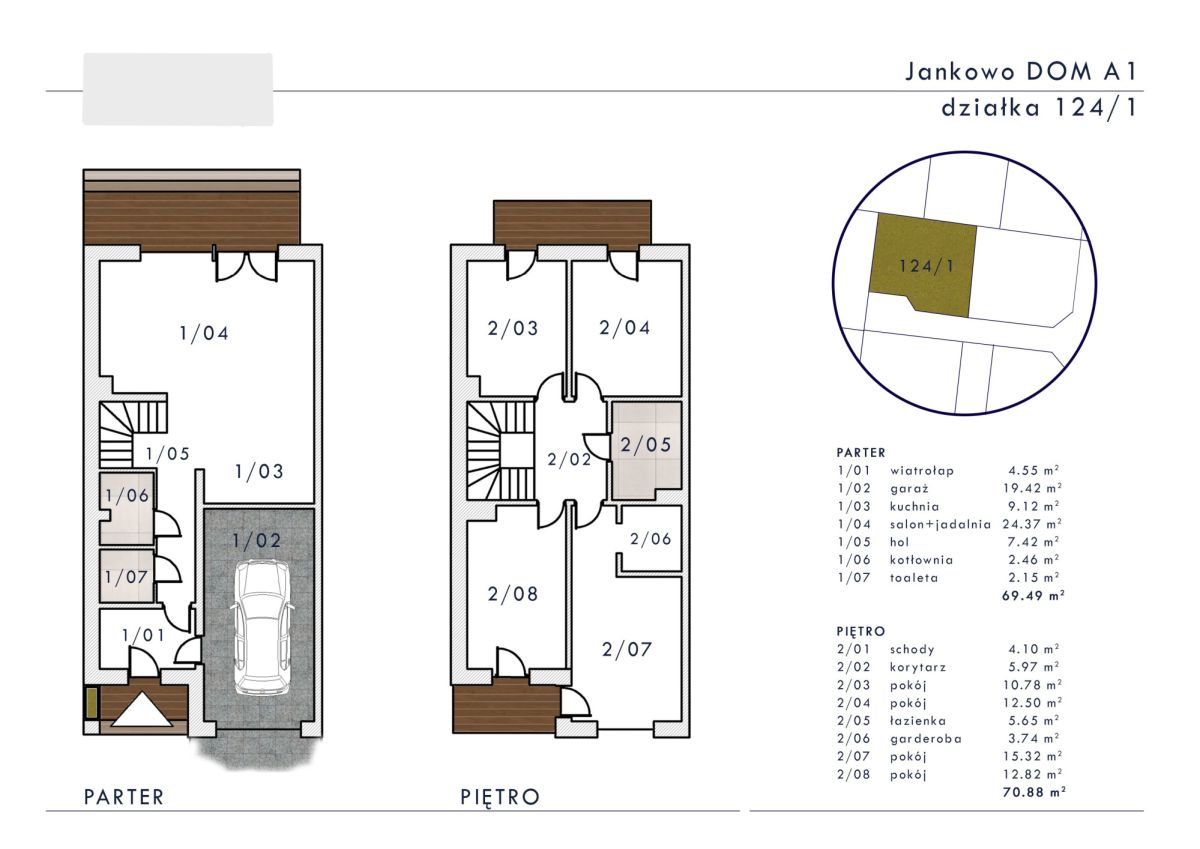 70m2, w tym:
