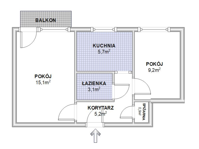 2-pokojowego mieszkania o powierzchni użytkowej