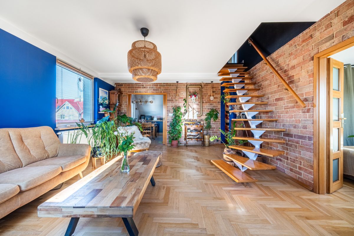 W części dziennej mieszkania, na poziomie pierwszym, znajduje się elegancki parkiet dębowy, który nadaje wnętrzu ciepła i ponadczasowego charakteru. Na piętrze położone są panele podłogowe wymienione około 3 lata temu, w bardzo dobrym stanie. Dodatkowym atutem jest ogrzewanie podłogowe (maty grzewcze) w łazience oraz w kuchni, zapewniające komfort użytkowania, szczególnie w chłodniejsze dni.