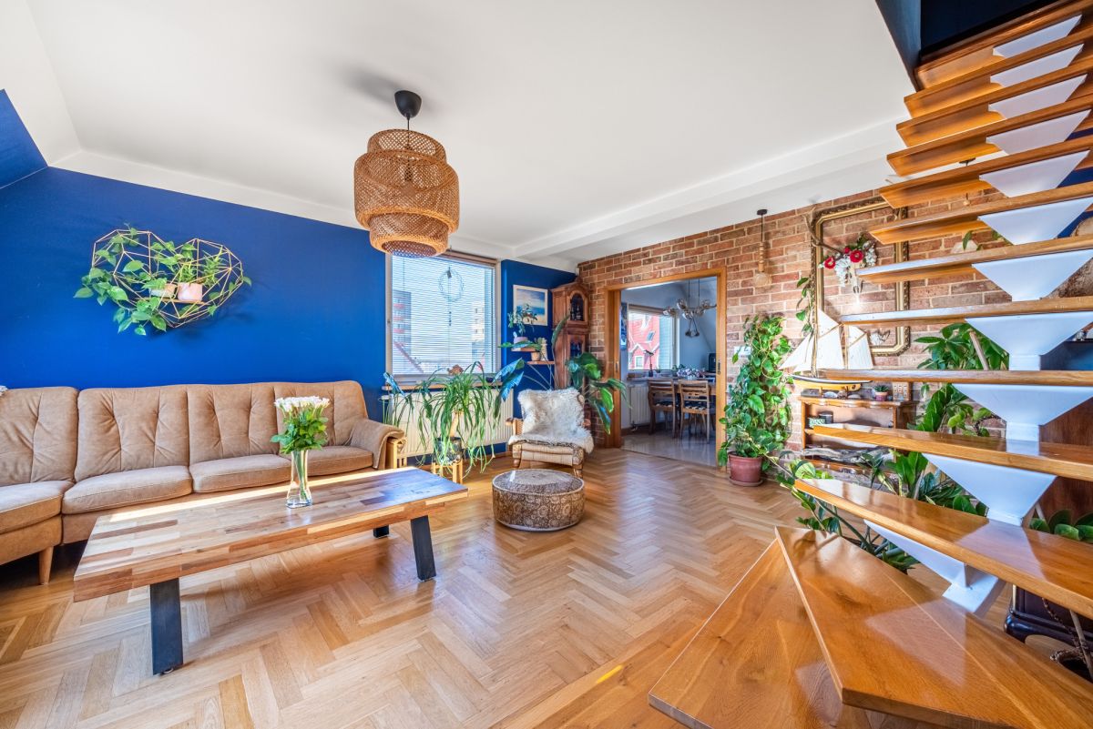 Przedmiotem oferty jest stylowe, dwupoziomowe mieszkanie znajdujące się na ul. Emilii Plater w Brzeźnie, 10 minut spacerem do morza.