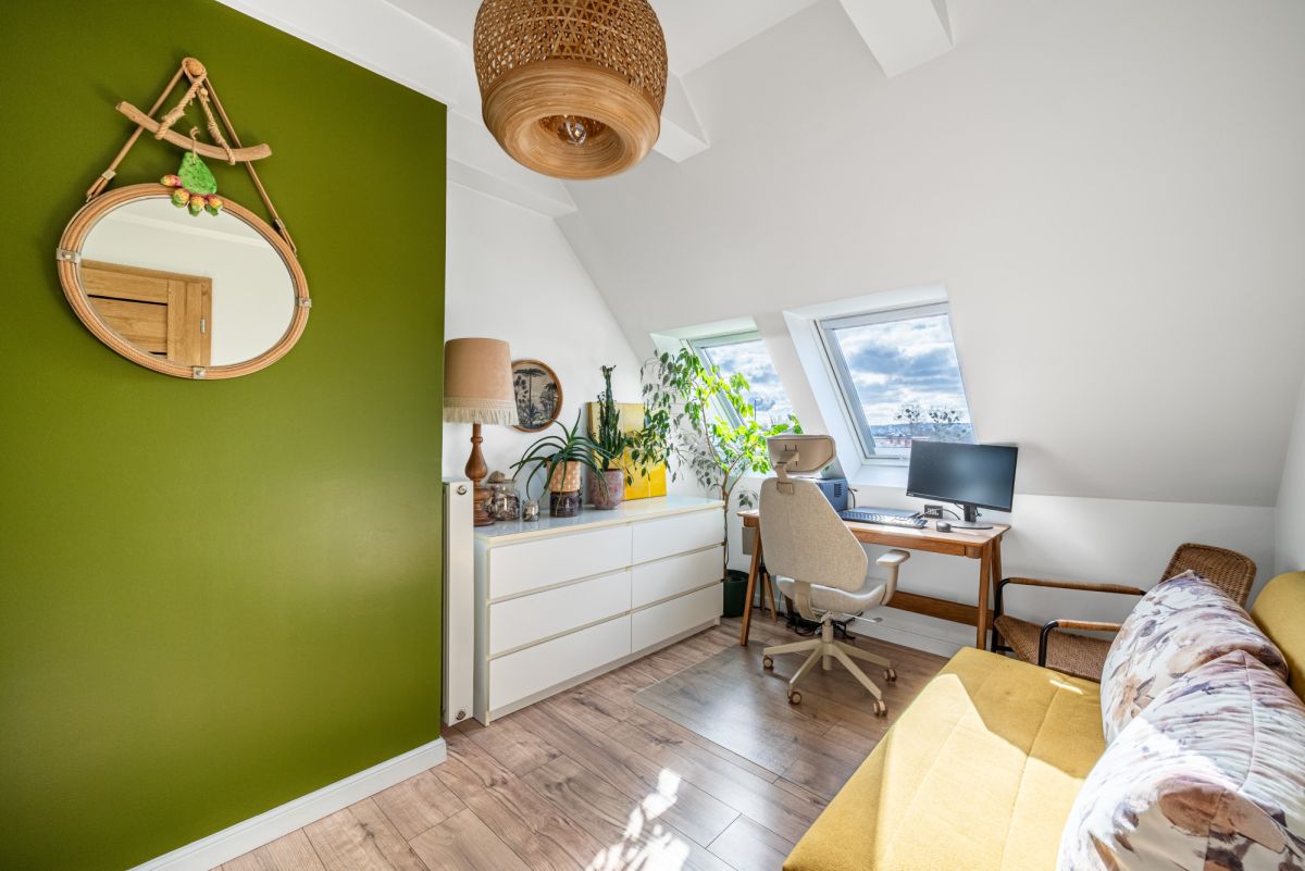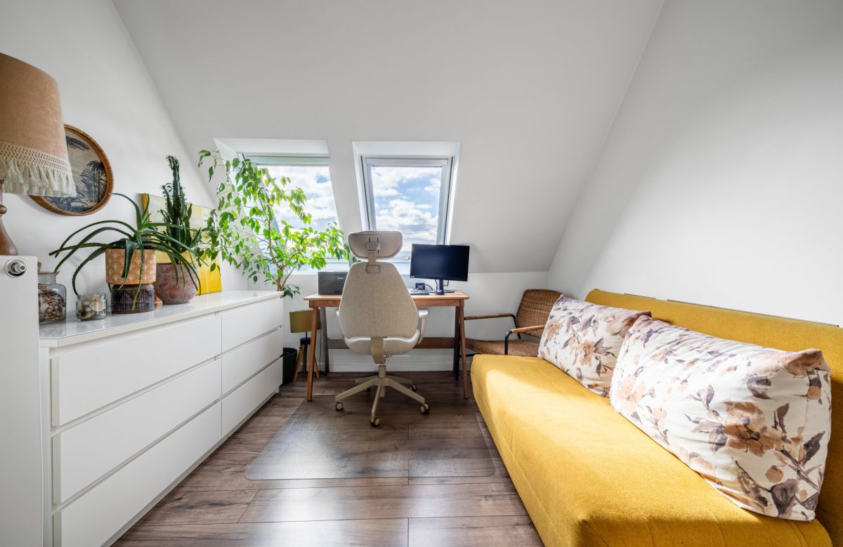 - pomieszczenie do przechowywania na stychu (wejście z korytarza między sypialnią a gabinetem)