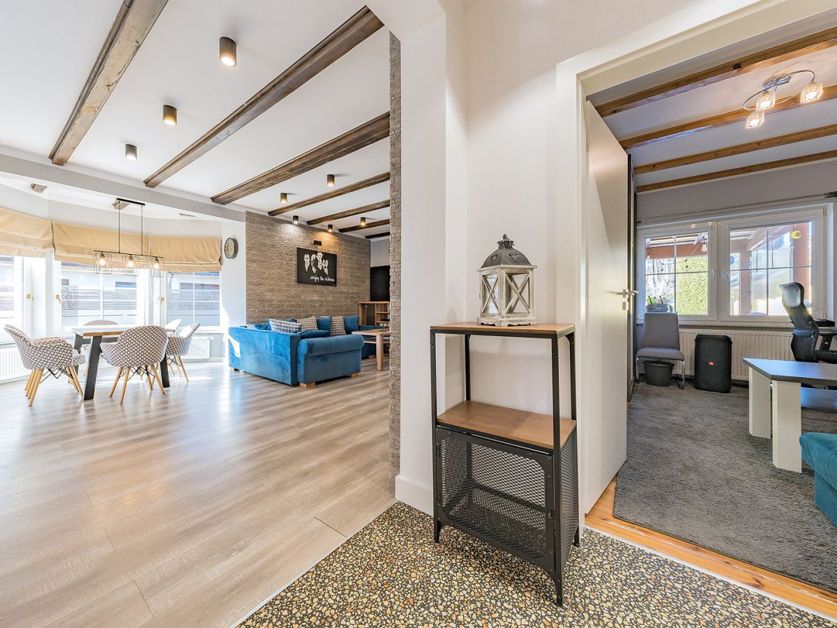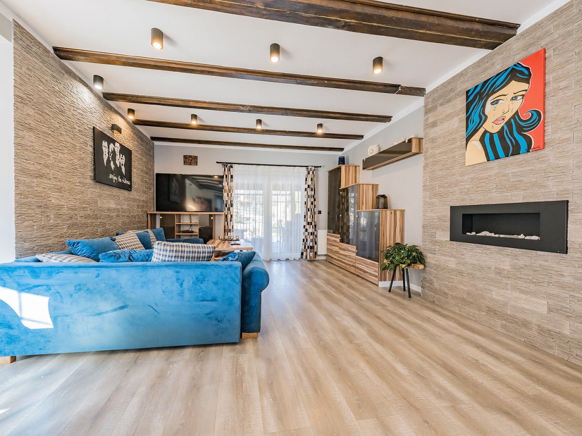• przestronny pokój dzienny z kominkiem, z wyjściem na taras i do ogrodu - o pow. 32 m2;