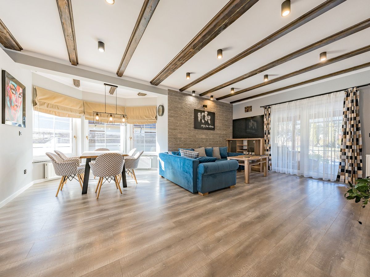 Dom ze względu na funkcjonalny układ pomieszczeń oraz dużą, pięknie zagospodarowaną działkę jest idealną enklawą do zamieszkania dla osób ceniących sobie ciszę, spokój i bliskość natury, jak również dobre połączenie komunikacyjne z Trójmiastem.