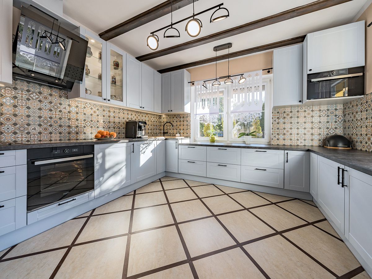 • funkcjonalna, otwarta kuchnia z oknem - o pow.13,3 m2;