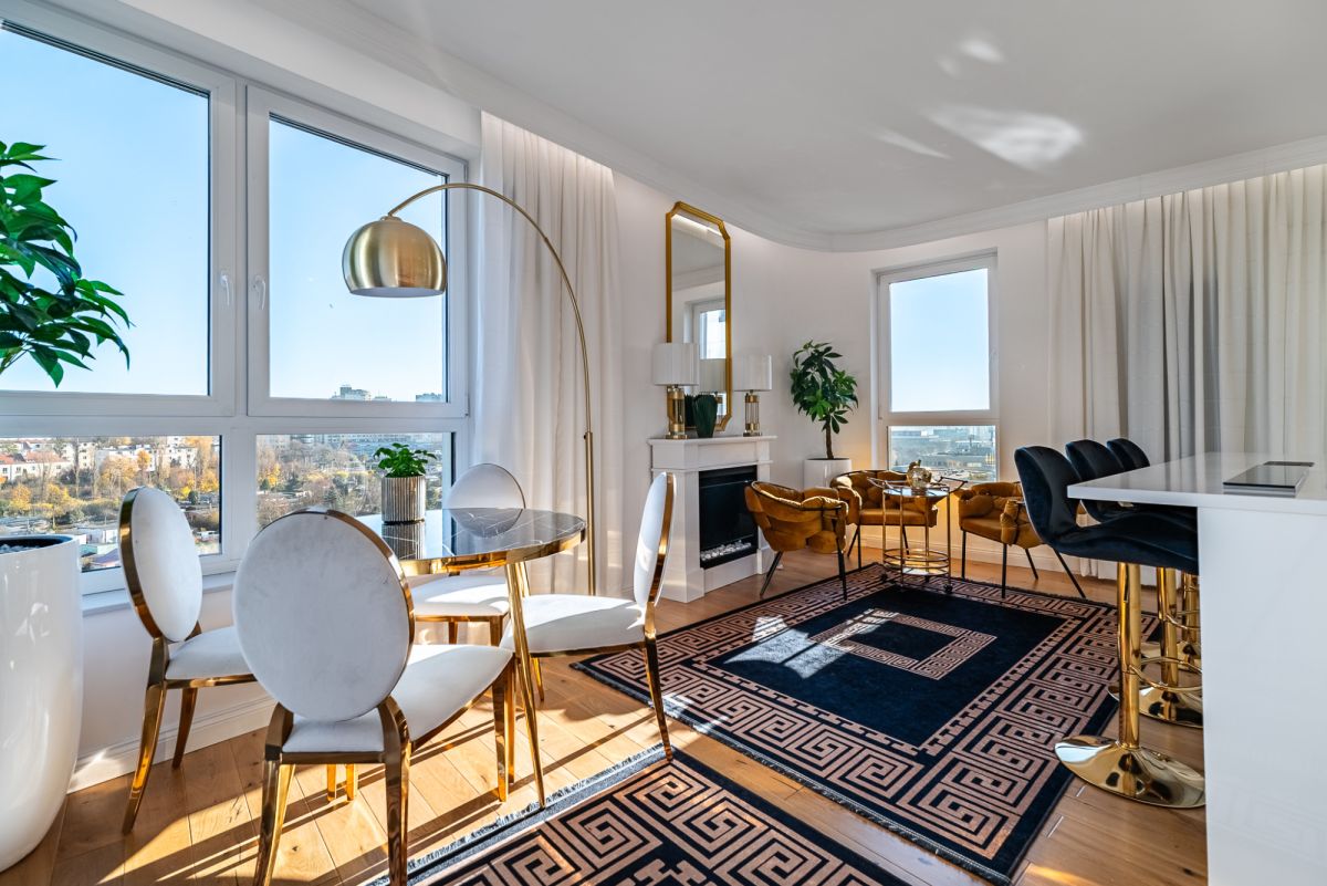Mieszkanie zachwyca naturalnym doświetleniem i słoneczną ekspozycją, dzięki czemu wnętrza są jasne, ciepłe i pełne harmonii przez cały dzień.