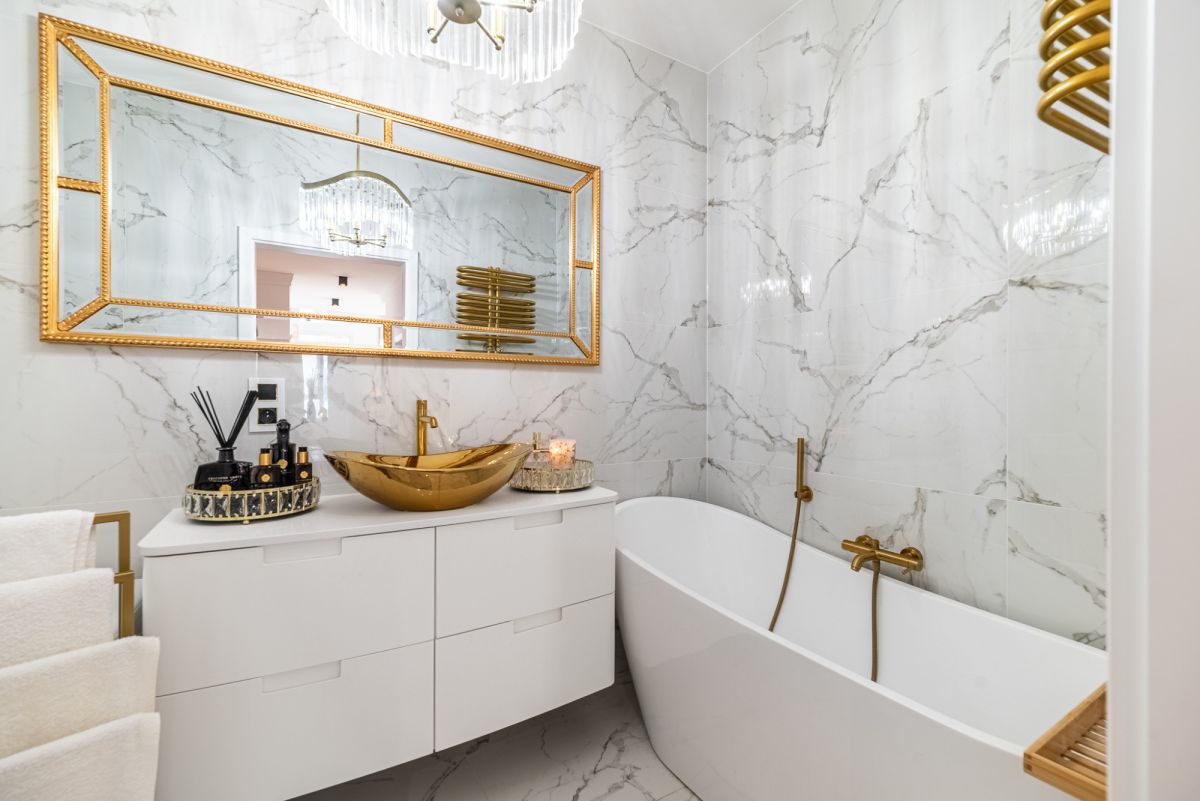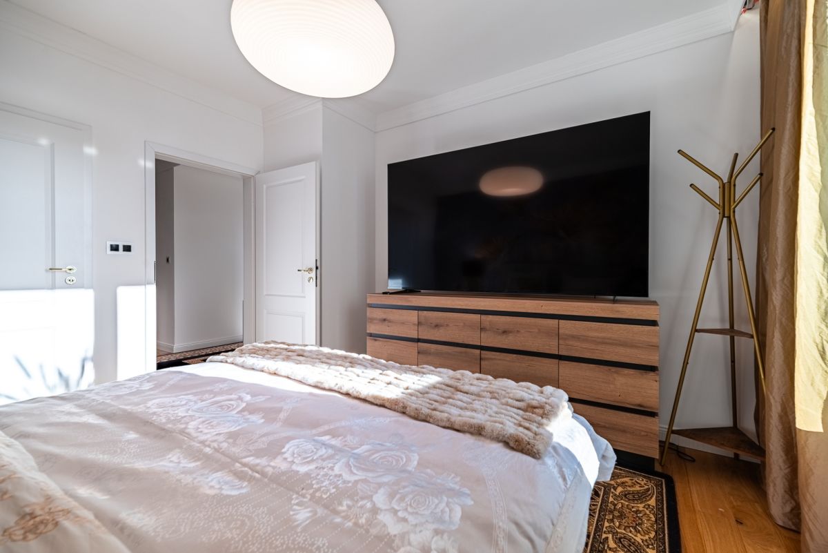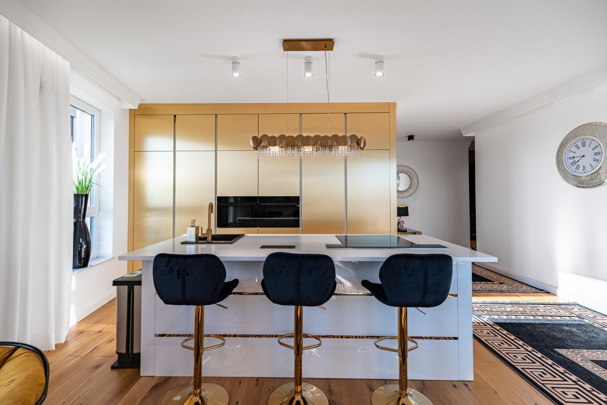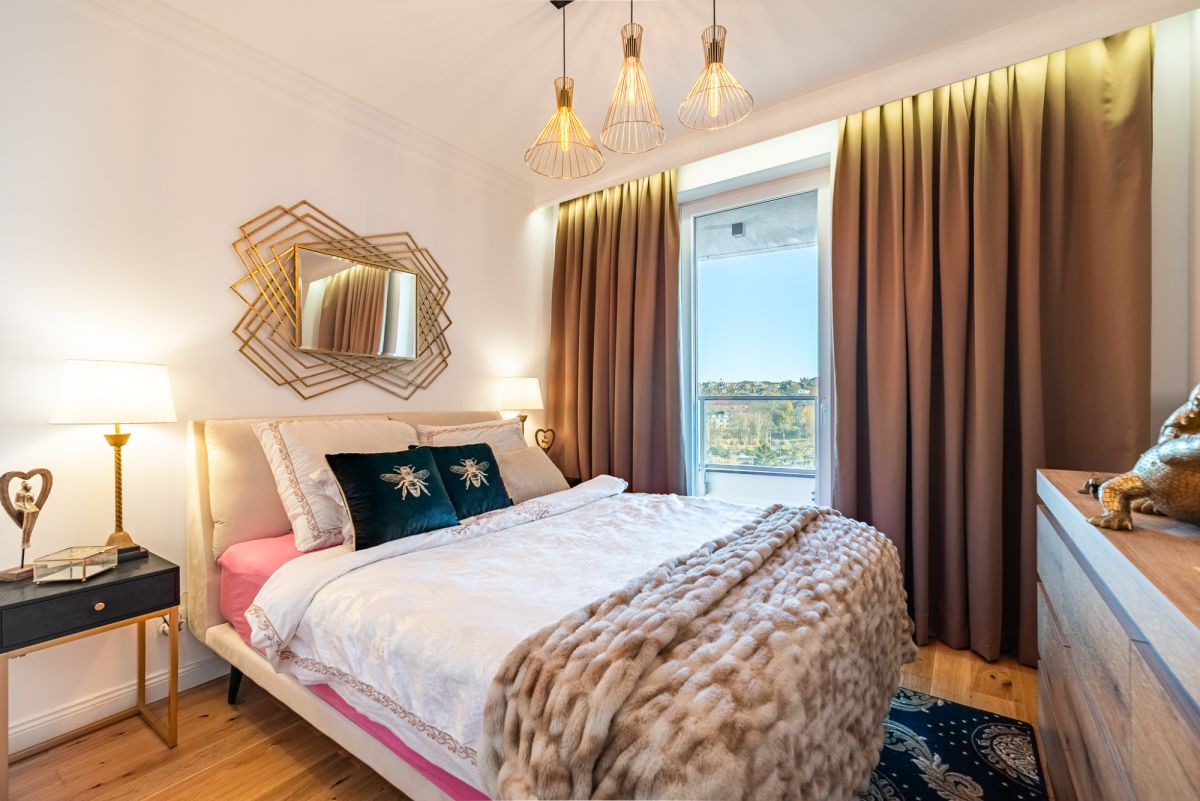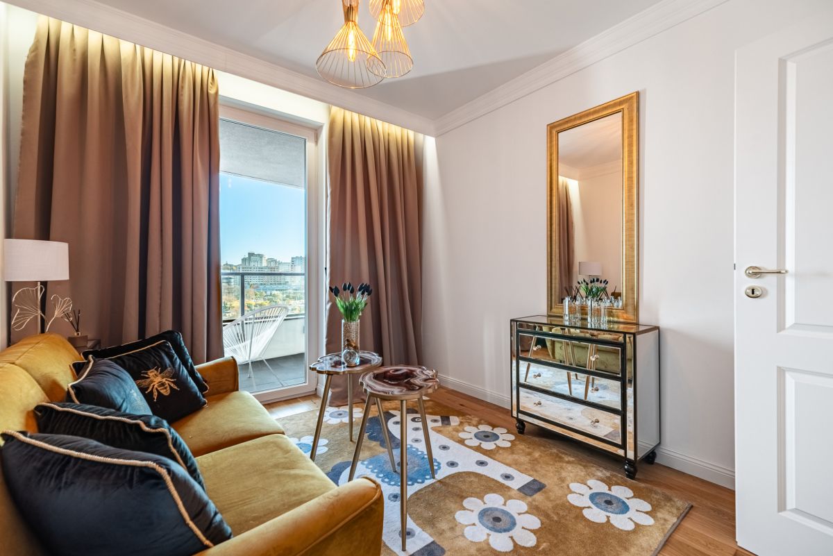 Wnętrze zostało zaprojektowane i wykończone z dbałością o każdy detal, w stylistyce Modern Classic, czerpiącej z elegancji i harmonii. Mieszkanie jest praktycznie nowe, właściciele korzystali z niego sporadycznie, traktując je jako prywatny apartament wakacyjny.