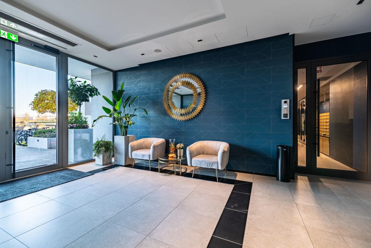 Na parterze znajduje się reprezentacyjne lobby z 24h recepcją, lokale usługowe, klub fitness dla mieszkańców.